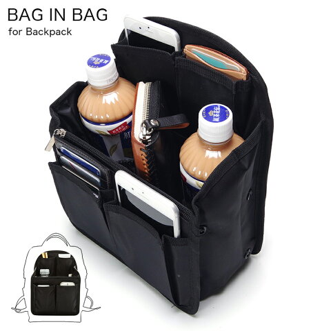リュックインバッグ バッグインバッグ インナーバッグ バックインバック リュックインバック 16ポケット 小物収納 黒 ブラック アーチ型 スリム 薄型 軽量 背面ハンドル付き A4 B4 B5 縦型 大容量 プレゼント 贈り物 ギフト