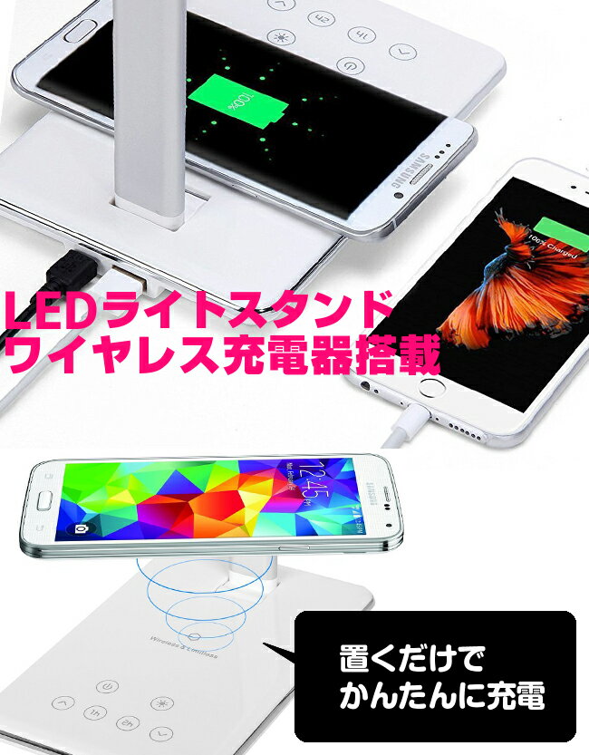 qi規格 チー スマホ スマートフォン LEDライトスタンド iPhone8対応 iPhone8Plus対応 iPhoneX対応 Galaxy AQUOS ARROWS LEDライト 折り畳み式 おしゃれ シンプル ホワイト オフィス デスク