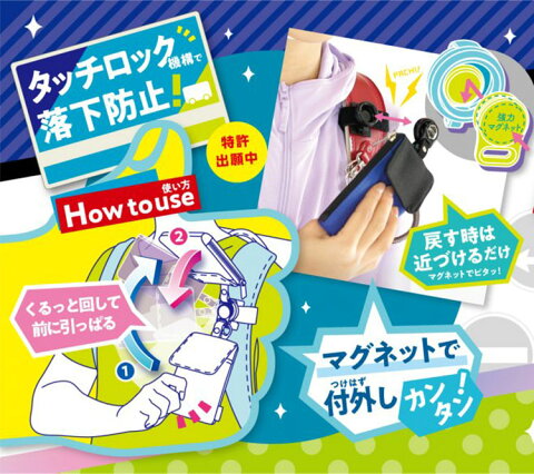Details パスキーケース ピタットパスで 通学&買い物&家の鍵などこれ1つでおでかけOK! マグネットで付けはずしカンタンなのに、 落ちにくい!タッチロック機構(特許出願中) 必要な電子マネーや小銭もまとめて持ち歩けるから、 改札や会計もピッとスマート! スパイラルチェーン付で、最大約60cmまで伸縮可能 外す時はケースを持ち、ロック部分を中心にぐるっと180度回転させ、 前方に向けて引っぱると外れます。